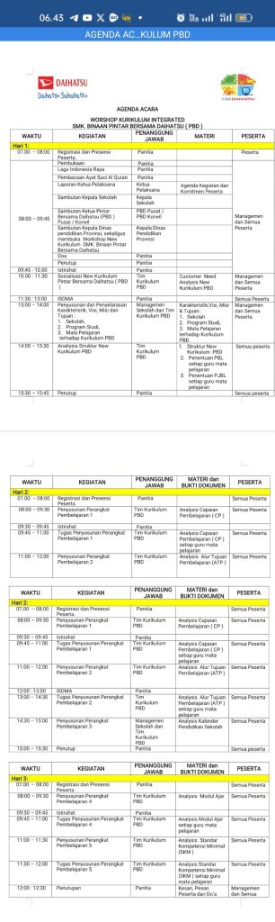 SMKN 5 Bengkulu Utara sebagai SMK Pusat Keunggulan (PK) mengadakan Workshop atau Pelatihan untuk seluruh guru selama 3 hari mulai Rabu, 8 November 2023 s.d Jumat, 10 November 2023. Workshop ini mendatangkan ahli dari Astra Daihatsu Motor pusat, Hazairin, ST., M. Pd.