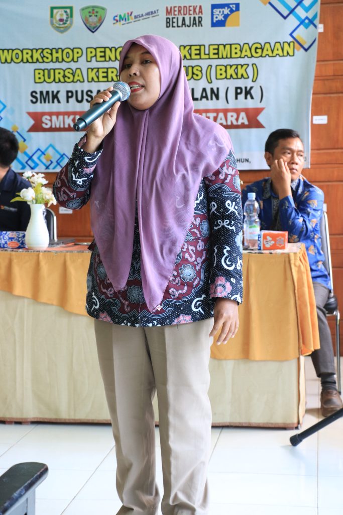 Narasumber Workshop adalah Sri Hartati, S. Pd., M. Pd. Ketua BKK SMKN 1 Kota Bengkulu sekaligus Tutor Universitas Terbuka. Didampingi juga oleh Dewi Murni, SE. Ak., MM. dari Dinas Tenaga Kerja Bengkulu.